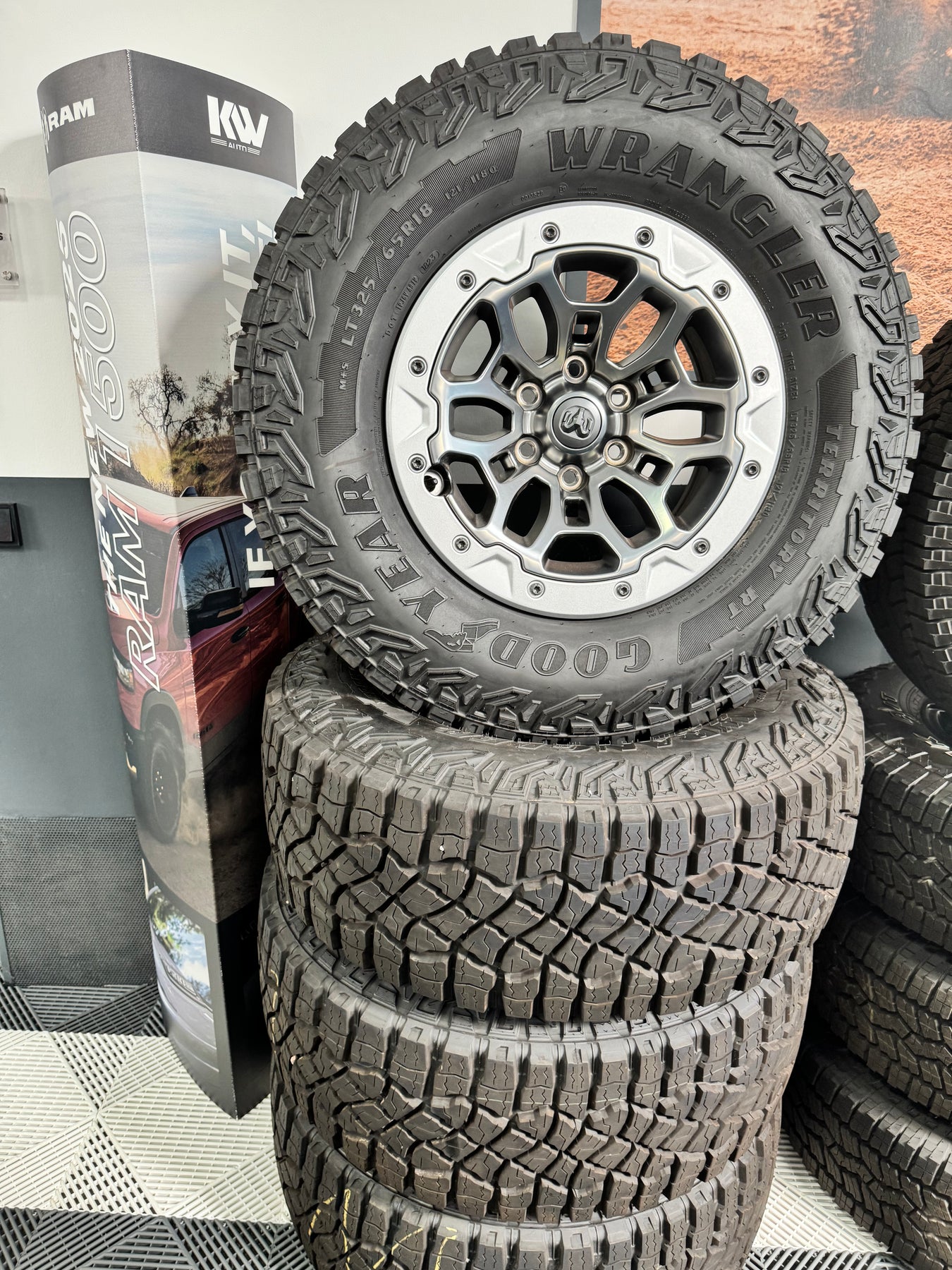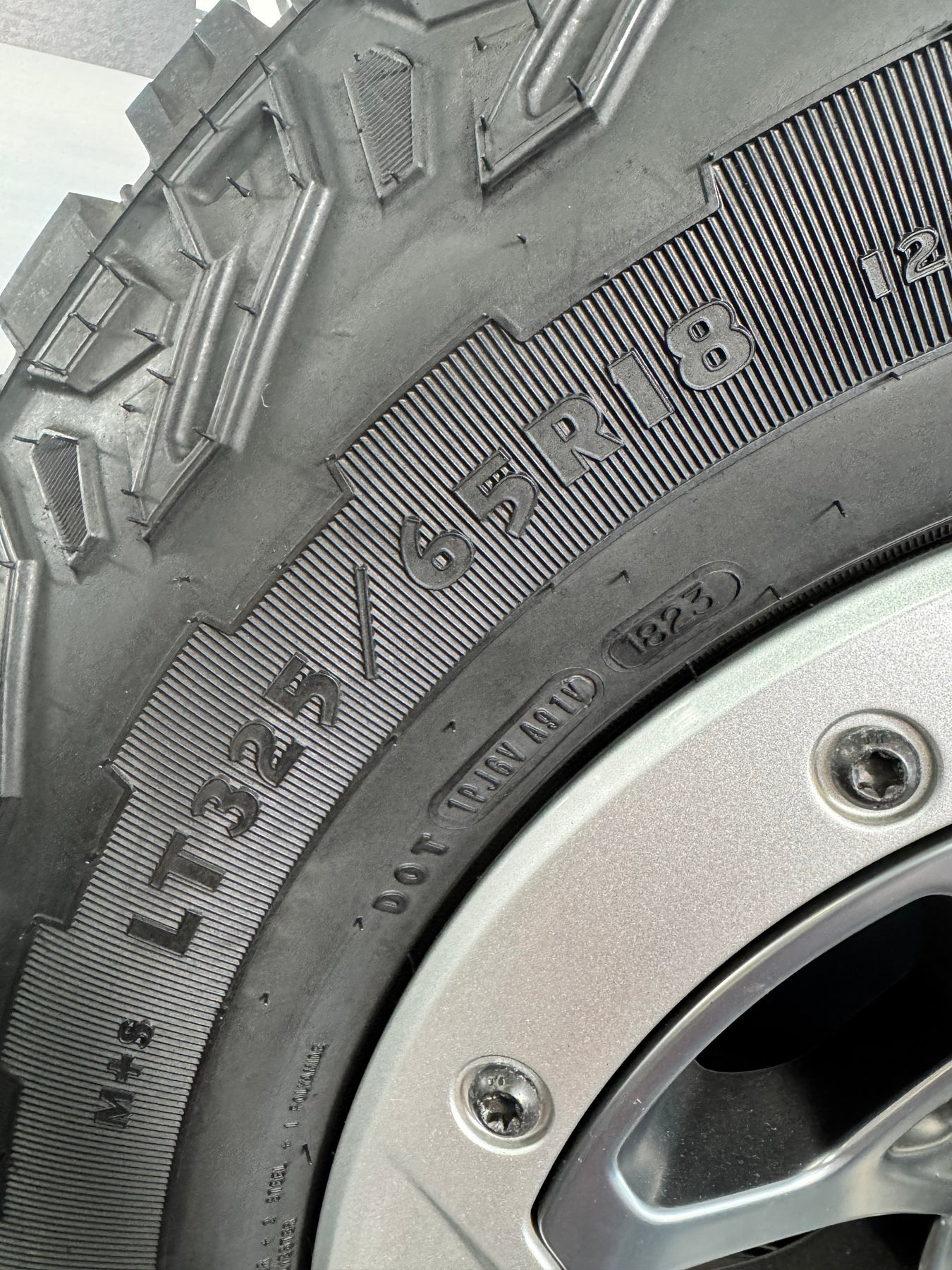 - Bereifung: Goodyear Wrangler Territory RT (All Terrain) / Verbaut sind LT 325/65 R18 121/118Q / DOT 18. Woche 2023