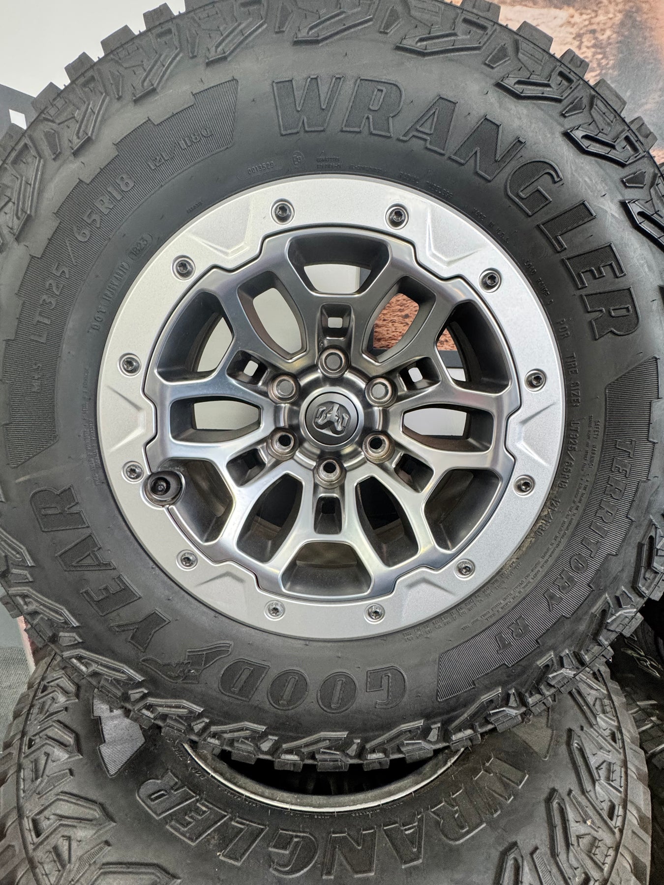 Zum Verkauf steht ein hochwertiger Komplettradsatz für den RAM TRX, bestehend aus mehrfachen Bedlock-Felgen, die speziell für Offroad-Performance und beeindruckende Optik konzipiert wurden.